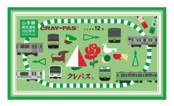 おなじみのクレパスⓇのデザインに、山手線のモチーフをあしらった限定仕様に。箱や巻紙に山手線の車両や路線をイメージしたイラストをデザインした、鉄道ファンも文具ファンも見逃せないアイテムとして、販売価格1,760円で発売中。
