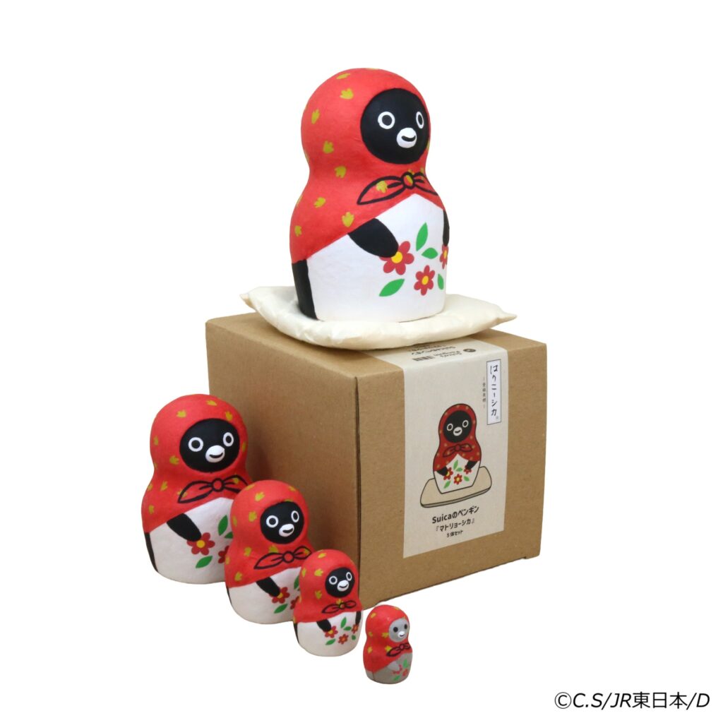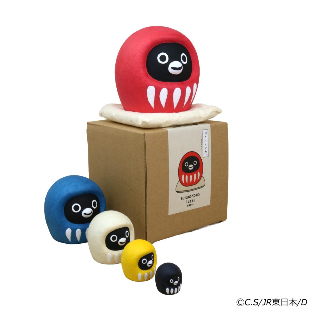 JR東日本クロスステーションは、Suicaのペンギン「はりこーシカ」のマトリョーシカとだるまの販売を開始した。
