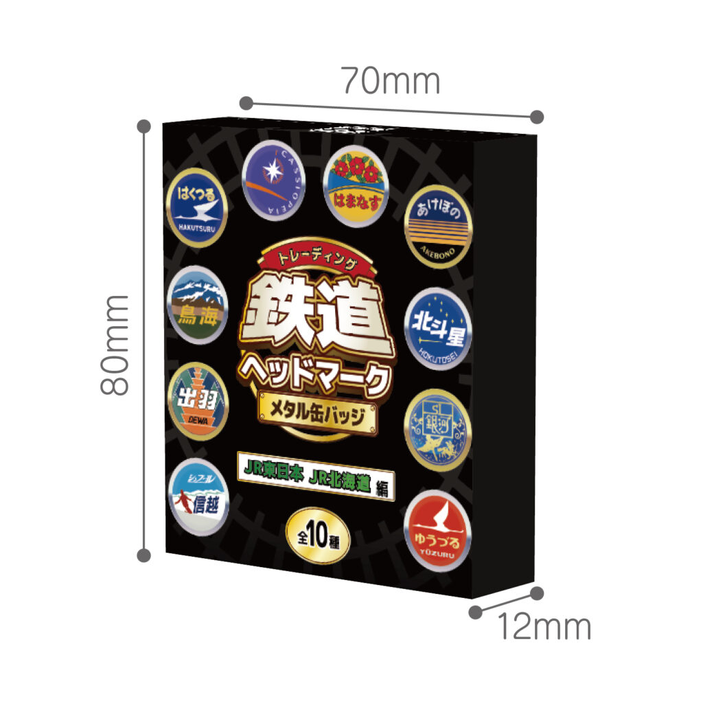 ビスタエースは、鉄道グッズブランド「トレイン魂」シリーズの第一弾、JR北海道・JR東日本で活躍した往年の名列車ヘッドマークをモチーフにした「トレーディング 鉄道ヘッドマークメタル缶バッジ JR北海道編・JR東日本編」を11月下旬に発売する。