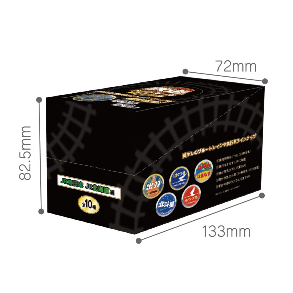 凹凸加工を施した直径56mmのメタル缶バッジは重厚感のある仕上がりで、昭和から令和にかけて北海道と東日本を駆け抜けた名列車のヘッドマークを厳選し、大判のメタル缶バッジとして立体感あるデザインで再現。「あけぼの」「カシオペア」「シュプール信越」「北斗星」「はまなす」「鳥海」「はくつる」「ゆうづる」「出羽」「SL銀河」など全10種類をブラインド仕様で展開する。