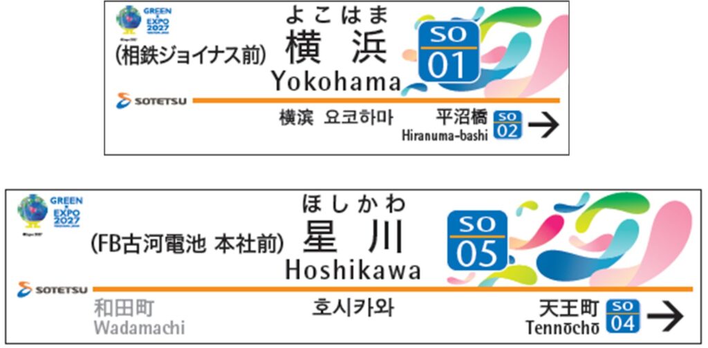相鉄線の駅に「GREEN×EXPO 2027」特別仕様デザインの駅名標が新たに登場した。