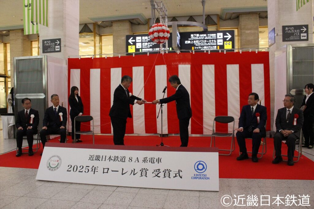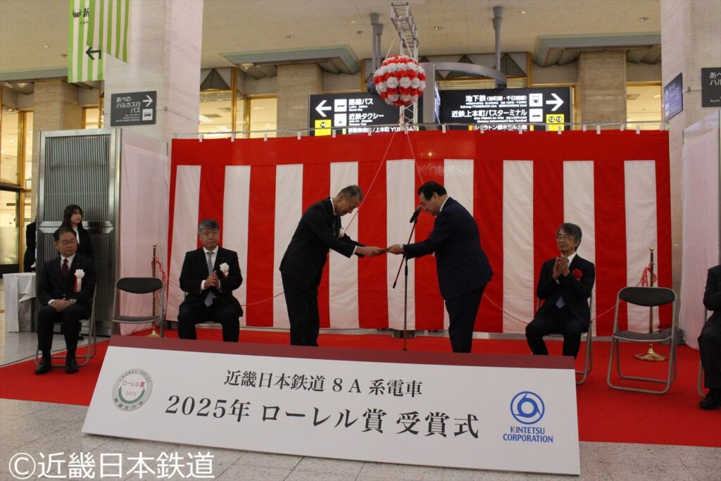 近畿日本鉄道は、新型一般車両「8A系」が鉄道友の会が選定する2025年ローレル賞を受賞、『新型一般車両「8A系」』のローレル賞授賞式を大阪上本町駅において11月16日に開催した。