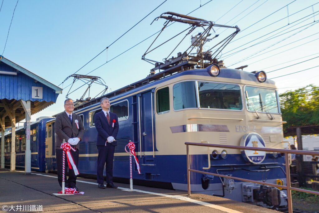 2025.11.25 Photo report News TRAINS編集部 人気を博した名列車「12系客車」がついに動き出す 大井川鐵道の「12系客車」がデビュー ブルートレインが東海道に復活<Report> 大井川鐵道は、11日16日から「12系客車」の営業運転を開始した。 「12系客車」の営業運転は、ED31 4と12系客車4両の編成の「EL急行かわね路53号」として運行を開始。運行開始に先立ち、出発式が新金谷駅において執り行われた。 鳥塚亮 大井川鐵道代表取締役社長は、『なぜ大井川鐵道でブルートレインかということですが、皆様ご記憶にあると思いますが、ブルートレインは天下の東海道を走っていた列車であります。ですから、静岡のこの地に大変ふさわしい、これがブルートレインだと我々は考えております。大井川鐵道は不通区間があり経営的にも厳しい状況ではありますが、常に話題をもって皆様にお楽しみいただき、静岡を盛り立てていける鉄道であっていきたいと考えています』と話した。 また、大井川鐵道は2026年がSL復活運転50周年であること。そして「12系客車」は、最初に作られたのが昭和45年の「大阪万博」の時であることや今回の大阪万博の時にまた復活運転をするということから、『非常にストーリーにも富んでおりますので、ぜひぜひ皆様方も大井川鐵道で復活するブルートレインにご乗車いただいて、楽しい旅の思い出を作っていただればと思います』と話したほか、その魅力について、「昭和後期に全国で活躍した懐かしさ、古き良き昭和を感じさせる車両。旧型客車と比べ冷房設備やサスペンション、座席ピッチの改善により快適な旅を提供できます」と話した。 今後は、電気機関車・SLなどの蒸気機関車と両方の観光列車としての運行や、食堂車の通年運行、夜行列車、年越し列車も計画を予定するとしている。 【画像提供:大井川鐵道】