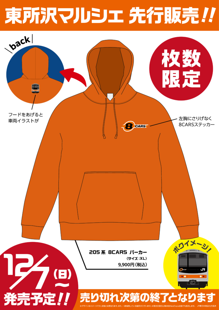 また、東所沢マルシェにおいて「205系 8CARS パーカー」を先行販売する。