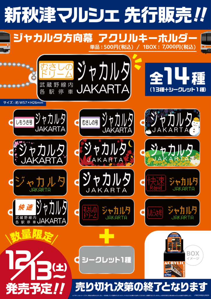 また、新秋津マルシェにおいて「ジャカルタ方向幕 アクリルキーホルダー」を先行販売する。なお、販売は簡易箱での販売に変更となり、なくなり次第終了となる。
