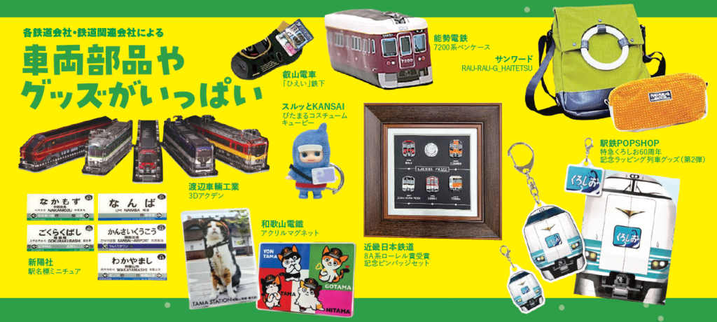 2026年もさらにパワーアップ!関西圏を中心とした鉄道会社・鉄道関連会社などが勢揃い。スルッとKANSAI、和歌山電鐵、能勢電鉄、叡山電車、京都丹後鉄道、奈良交通など関西圏の鉄道・バス関連会社や大井川鐵道、いすみ鉄道、くま川鉄道など関西以外のエリアからも鉄道会社が出展。また、西日本旅客鉄道(JR西日本)もtabiwa by WESTERとして参画、JR東海のグッズを手がけるJTA DIRECTなども出展、個性あふれる各鉄道会社のブースを楽しむことが可能だ。