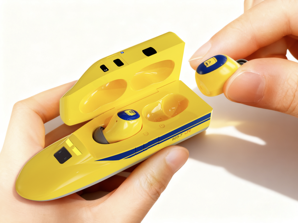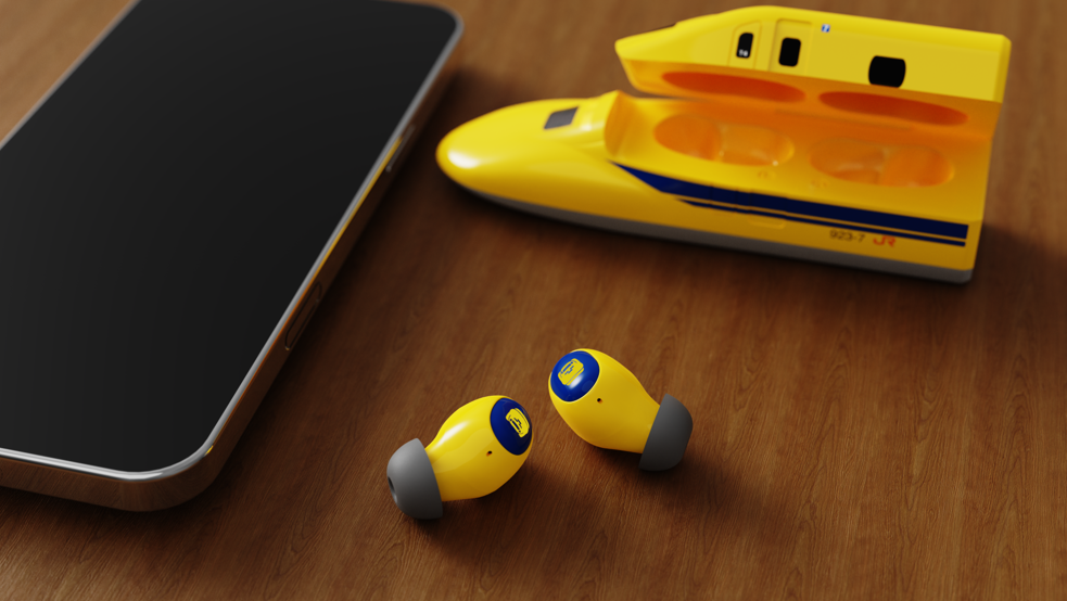 2025年1月に惜しまれつつ引退したJR東海所属の新幹線電気軌道総合試験車923形0番代「ドクターイエロー」(T4編成)をモチーフとしたワイヤレスイヤホンが登場した。