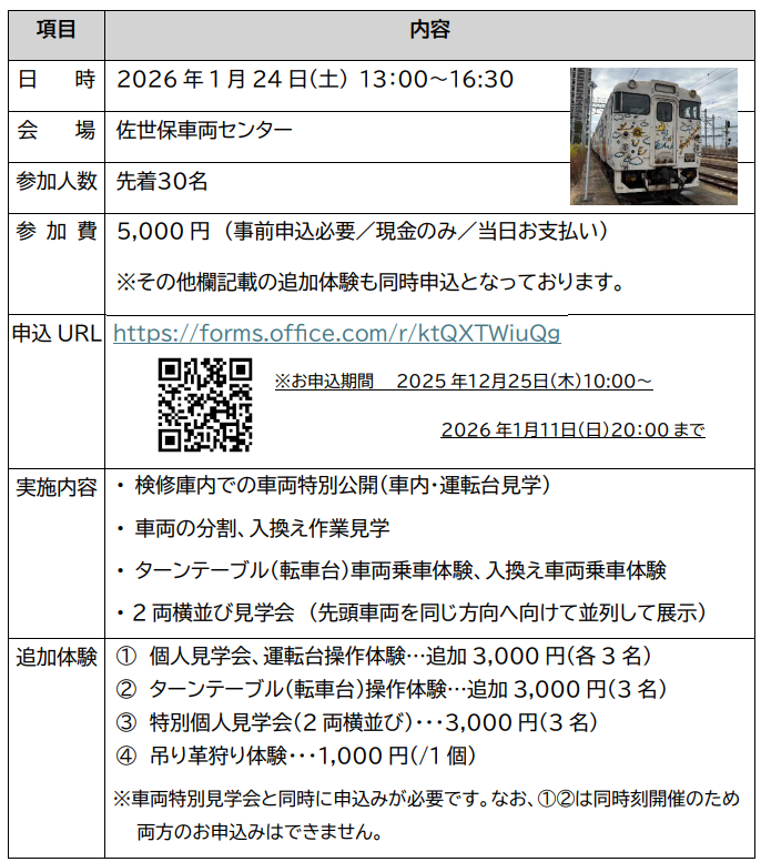 ●①「Choo Choo 西九州TRAIN」車両特別見学会