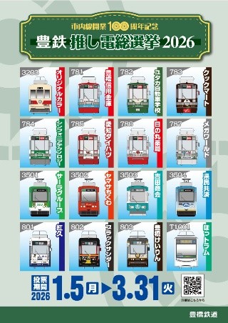 豊橋鉄道は、「豊橋鉄道市内線 開業100周年記念企画」の第3弾の一環として、『豊鉄“推し電”総選挙』を初開催する。