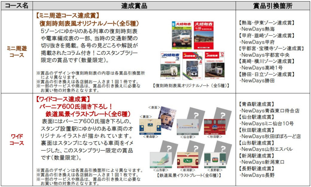 ・ミニ周遊コース対象駅 :全10駅(熱海駅・伊東駅/甲府駅・韮崎駅/宇都宮駅・宝積寺駅/高崎駅・横川駅/勝田駅・日立駅)