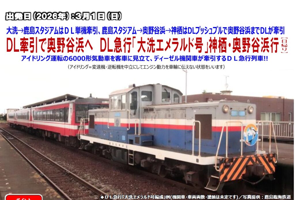 日本旅行は、『DL牽引で奥野谷浜へ DL急行「大洗エメラルド号」神栖・奥野谷浜行』を3月に実施する。