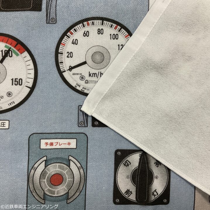 大阪線の近鉄一般車両の運転台イメージしたフェイスタオルとなっており、まるで運転士気分!?を味わえる一品となっている。