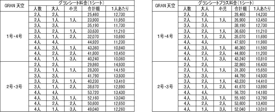 ※料金には南海電鉄の各駅(一部を除く)~高野山駅間の運賃を含む※グランシート、グランシートプラスは1シート4人掛け。1シート2名から利用可能※