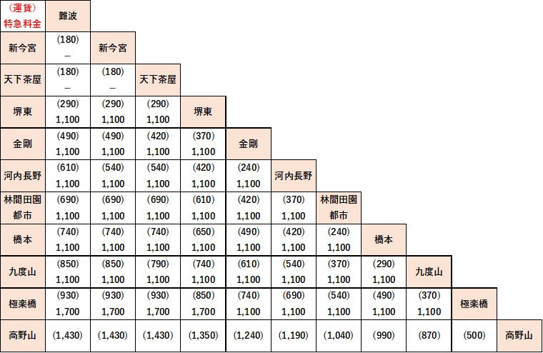 また、1号車の「リラックスシート」、2号車の「ワイドビューシート」の特急料金は、難波~極楽橋間の場合1,700円に設定された。なお、特急料金のほか乗車券(運賃)が必要となる。
