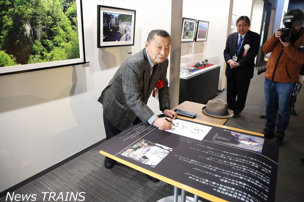 これまでも多くの「鉄道写真」を写し発表してきた南氏だが、作品の常設展は初めてだといい、登壇した南氏は「常設展示コーナーの設置、大変嬉しく思います。実は…2020年の写真を寄贈する前…自分の作品はどうなるんだろうという気持ちになった時がありました。自分の作品は一代で終わりにしたほうが…」と思った時があったといい、その話をある方に話した時に「それではよくない、残さなければならない」と強く言われたといい、そういった経緯などがあったことから作品を寄贈することになったという。