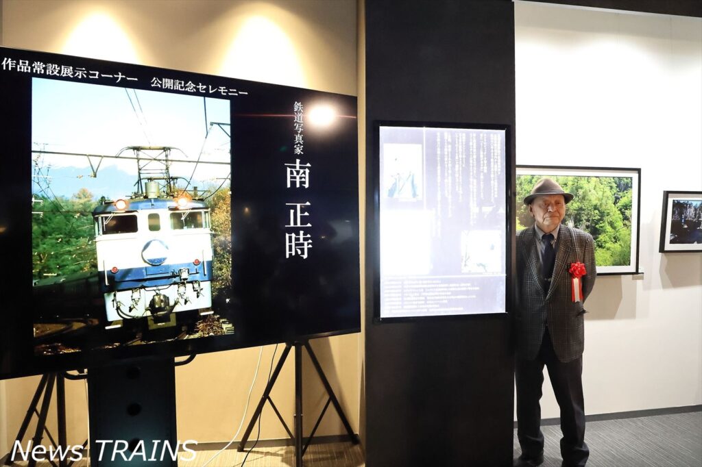 オープニングセレモニーでは、石田亨鉄道博物館館長による挨拶が行われ、「1年ぐらい前から常設展示コーナーを設置しようと話が進められており、ようやく今日スタートの運びとなりました」と話した。また、南氏が昨年出版した写真集などについても触れ、「南氏の写真について非常に良いところは、個々の写真も素晴らしいが、個々の写真についてのエピソードも非常に素晴らしく、こういったところも常設展で見ていただき、写真の良さを伝わっていってほしい思います」と話した。