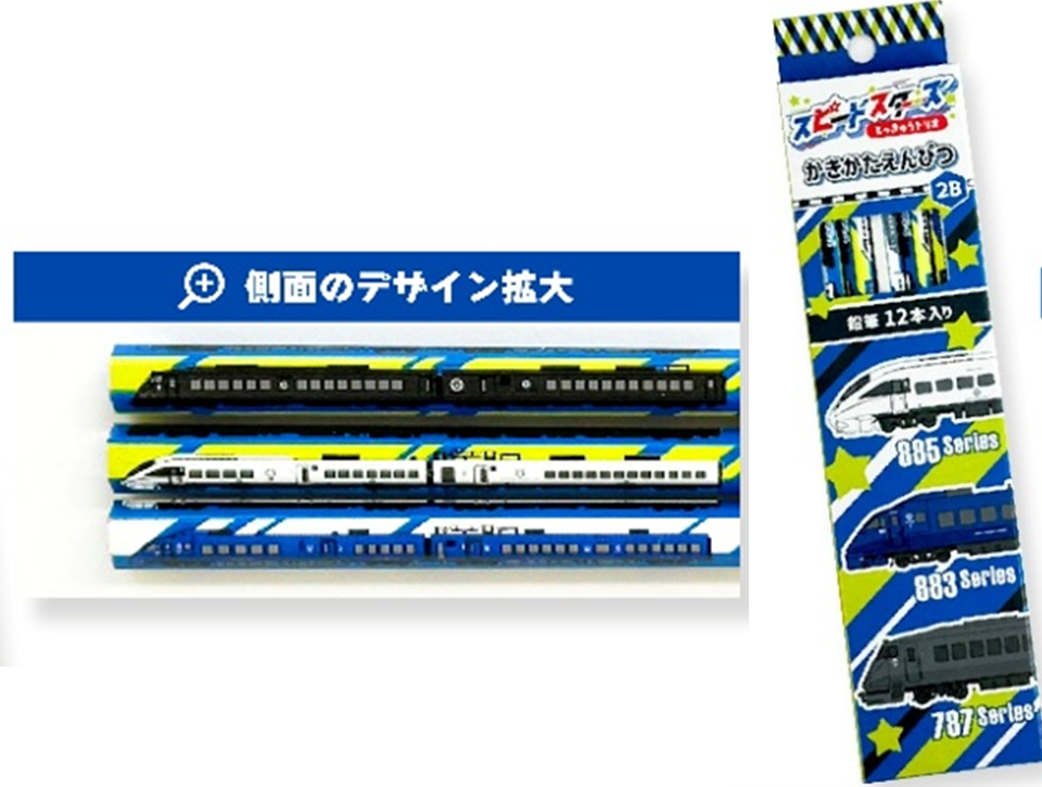 スピードスターズ特急トリオは、九州旅客鉄道(JR九州)の特急列車をモチーフにした文房具シリーズ。九州各 地を駆け抜ける特急列車のスピード感と、日々の学びを前へ進める力を重ね合わせ、「スピードス ターズ」と名付けたという。デザインには、885系、883系、787系の3車両を採用。九州各地を結 び、長年にわたり多くの利用者の移動を支えてきた特徴ある九州の特急列車の魅力を、毎日の学 習シーンに取り入れた。