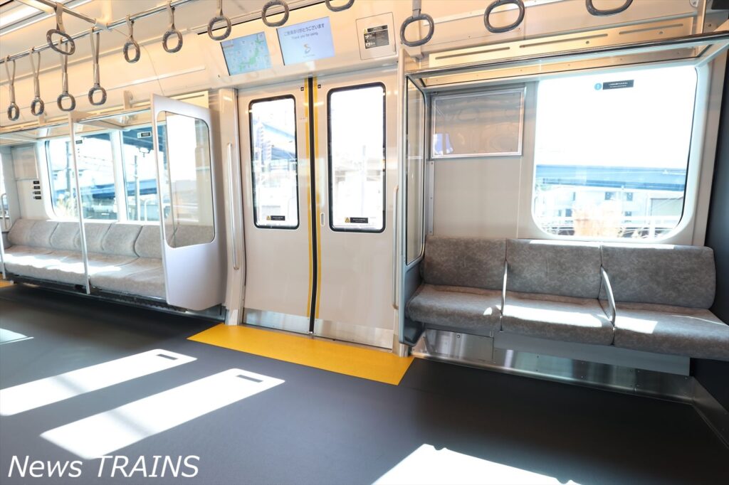 12000系と比較すると先頭車の座席数を6席、1編成あたり12席増加しているほか、グレー色を基調とした内装で統一。