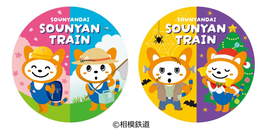 「そうにゃんトレイン」は、相模鉄道キャラクターそうにゃんが 2014 年に広報担当として入社以来、毎年ラッピングのデザインを変えて運転している。