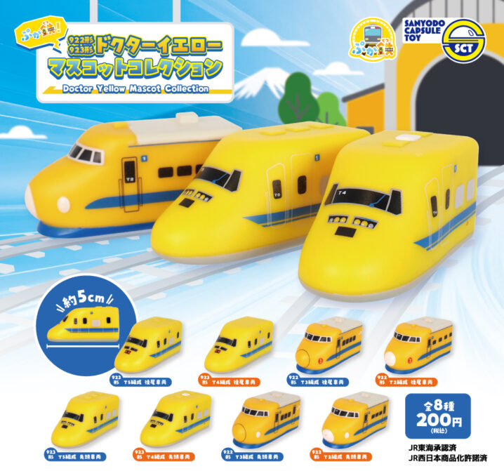 縁日商材をはじめとする玩具等の製造販売を行う株式会社三洋堂は、カプセルトイの新商品『ぷか鉄!922形923形ドクターイエローマスコットコレクション』を全国のカプセルトイ自動販売機で発売を開始した。