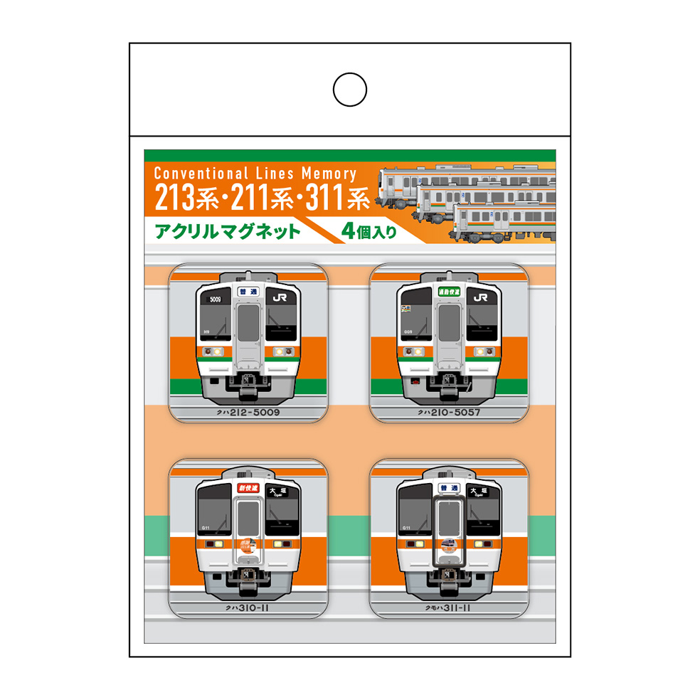 販売商品:213系(モケットカメラストラップ、モケットチャームキーホルダー)、213系・211系・311系(マグネット4個セット、アクリルスタンド、フレークシール)