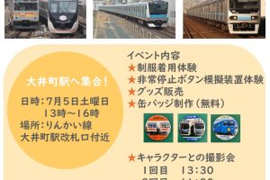 東急電鉄・東日本旅客鉄道(JR東日本)・東京臨海高速鉄道は、「東急線×JR線×りんかい線 大井町駅ふれあいフェスタ」を7月5日に開催する。 大井町駅改札口付近において、「制服着用体験」「非常停止ボタン操作体験」などのほか…