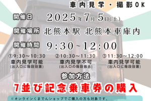 熊本電気鉄道は、北熊本駅熊本車庫において夏休み特別イベントを8月18日に開催する。 故障のために運休が続いている「くまモンのラッピング電車(ピンク)」が特別開放され、車両の見学や撮影などが楽しめるほか、運転台見学・制服・…